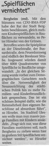 auch Spielplätze. Genauso fragwürdig ist es, neue Baugebiete ausweisen zu