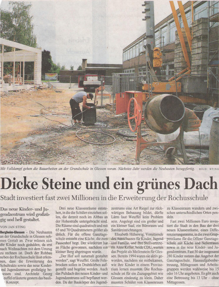 Quelle: KStA vom 08.08.2008 Kommentar: Schön, dass sich hier die CDU-Damen Hülsewig und Keller mit einem Prestige-Objekt in den Vordergrund aufspielen. Allerdings sollte dann auch in den Zusammenhang gerückt werden, dass es einen Beschluss des Ausschusses für Schule und Weiterbildung vom 17.01.2007 gibt. "Der alte und schlecht erreichbare Dorfplatz wird zur Bebauung freigegeben. Aus dem Verkaufserlös haben wir einen weiteren Finanzierungsbeitrag für die Neu- und Umbauten am Wierichskamp" (Niederschrift der Sitzung vom 17.01.07, S. 2). Weiter heißt es in der Niederschrift: "Durch den Leerstand ´Hohe Straße´ ergibt sich die Möglichkeit, das marode, unattraktive Gebäude abzureißen, um auf dem Grundstück einen attraktiven Dorfplatz zu entwickeln" (Niederschrift vom 17.01.07, S. 2). Welchen Sinn machte da die Bürgerwerkstatt bzgl. des Dorfplatzes ? Wie sieht denn nun die endgültige Finanzierung des Schulanbaues aus, wenn die zunächst geplanten Erlöse aus der Veräußerung der Dorfplatzfläche entfallen ? Hierzu nehmen die CDU Damen Hülsewig und Keller keine Stellung. Aber was soll man auch anderes erwarten, wenn Lieschen Müller über Millionen in einem Kommunalhaushalt zu entscheiden hat. Die Suppe für Prestigeobjekte müssen wieder einmal die Bürger auslöffeln (durch etwaige Erhöhungen bei den Grundbesitzabgaben). Broetje 05.09.2008 |