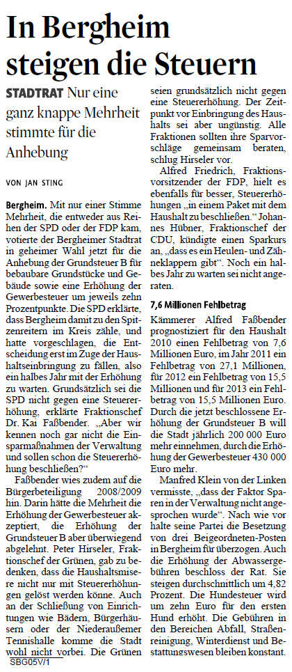 Bergheimer Stadtrat erhöht Steuern Quelle: Presssemitteilung 16.12.2009