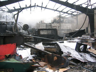 Einsatzbilder Brand einer Schreinerei, Bergheim- Glessen 16.02.2005