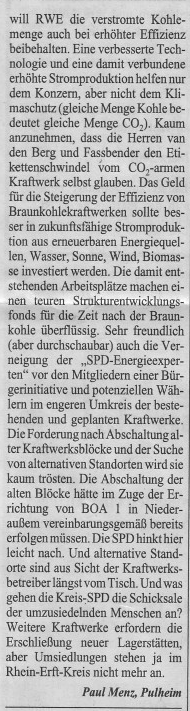 Niederaußem nicht geschehen. Die SPD fordert jetzt einen rechtlich