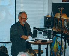 Ein Tonband spielte Karl Rovers bei der Multimedia-Lesung