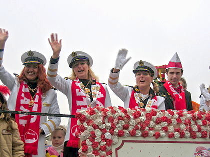 Ebenfalls auf dem Prinzenwagen: die drei Frauen Petra Paulsen, Ursula Schmitz und Claudia Paus (Quelle: M. Broetje 2007)