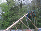 Der Maibaum wird mit Hilfe langer Stangenpaare sogen. "Schwalben" aufgestellt (Quelle: M. Broetje 2006)