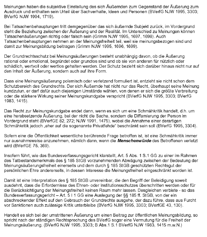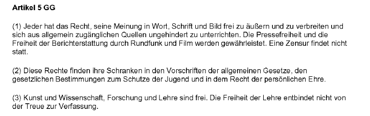 Beteiligung von Bürgern und Meinungsfreiheit (von Michael Broetje / Stand: 30.05.2006) Das Instrument der Diskussionsforen im Internet ist nicht unumstritten. Eine Umfrage hat ergeben, dass sich die Mehrheit ein Diskussionsforum der Glessen-Gazette wünscht. Als Beamter habe ich einen Eid auf die freiheitlich-demokratische Grundordnung abgelegt. Bestandteil dieser freiheitlich-demokratischen Grundordnung ist u.a. das Rechtsstaatsprinzip. Die Wahrung und Beachtung der Grundrechte ist Aufgabe des Staates (angefangen vom Bund, dem Land NRW und der Kreis- sowie Stadtverwaltung. Eines dieser Grundrechte ist das Recht auf freie Meinungsäußerung. Die Nutzung des Internets (einschließlich der Angebote von Diskussionsforen, Gästebüchern usw. ...) ist eine moderne Form der Bürger-beteiligung. Es ergeben sich für Bürger, Politiker und Verwaltung neue Möglichkeiten der politischen Kommunikation und damit Beteiligung. Dies habe ich für mich erkannt und biete es neben den Informationsangebot über unseren Ort Glessen an. Dem Druck aus der Politik habe ich Stand gehalten. Ich lasse mich dabei von niemandem unter Druck setzen und habe bereits meine persönlichen Konsequenzen gezogen. Ich biete den Glessenern Bürgern die Möglichkeit an, ihre Meinung und Ansichten frei zu äußern, weil ich es mit der Bürgerbeteiligung und der Meinung der Bürger ernst meine. Dabei spielt es keine Rolle, ob ein "Willi", eine "Katja" oder sonst wer äußert. Auf den Meinungsinhalt kommt es an. Politik und Verwaltung können vom dazu gewonnenen Erfahrungs- und Bürgerwissen profitieren. Im Ergebnis kann die Distanz zwischen Politik und Bürgern abgebaut und die Qualität der Politik verbessert werden. Die Meinungsfreiheit nach Art. 5 GG beinhaltet und schützt nach ständiger Rechtssprechung folgende Aspekte: Zu diesem Themenkomplex habe ich zwei Dokumente als Download eingestellt: