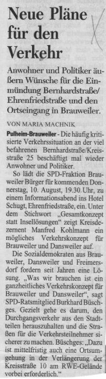 Verkehrskonzept für Brauweiler und Dansweiler auf. U.a. ist auch die Rede von