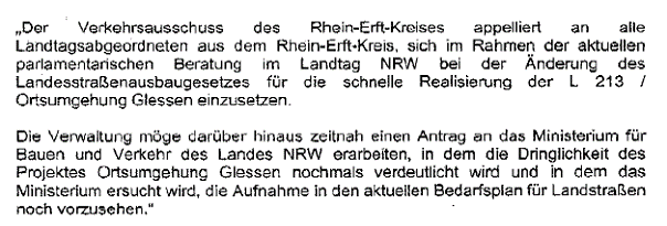 (ohne erneute Diskussion der Glessener Umgehung) mit den Stimmen der CDU